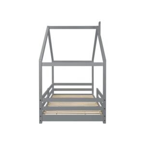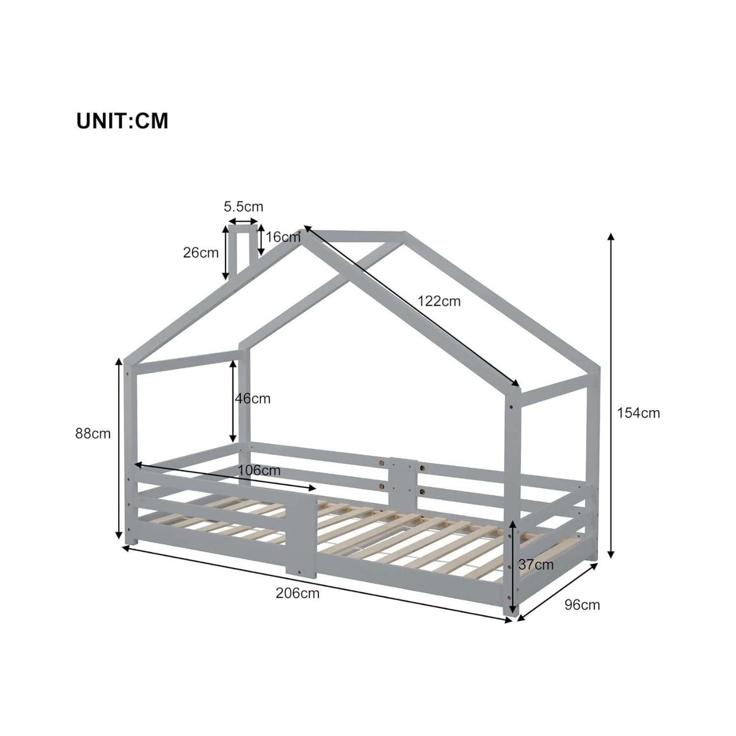 Transform your child’s bedroom into a magical retreat with our Montessori Floor House Shape Bed. Specially designed for a any mattress, this low-to-the-ground bed frame follows Montessori principles, making it easy for children to get in and out independently. The playful house silhouette sparks imagination and can be personalized with your choice of colors and decorations.