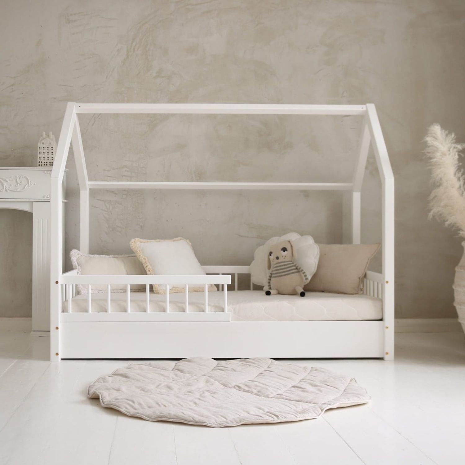 Create a dreamy and safe sleep space for your child with our Montessori White Cottage Bed. this charming cottage-style bed features sturdy rails and a low profile for easy access. Perfect for modern nurseries and Montessori-inspired bedrooms.