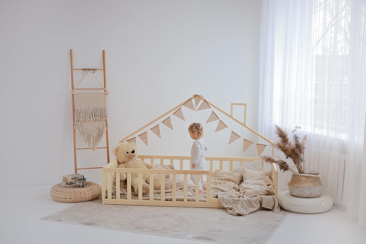 • Charming House Shape: The roof frame adds a playful touch, making bedtime fun and inviting.