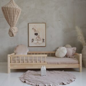 Upgrade your child’s bedroom with our Wooden Child Bed with Rails, crafted for both safety and comfort. This bed is designed for  mattress and features a strong, natural wood frame with secure rails—making it ideal for toddlers and young children transitioning from a crib.